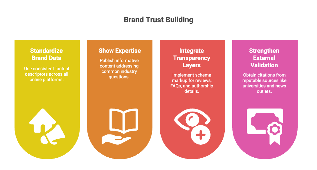 AI engines reward brands that are verifiable, transparent, and consistent. Digital trust signals aren’t decoration — they’re the currency of credibility in the generative web.