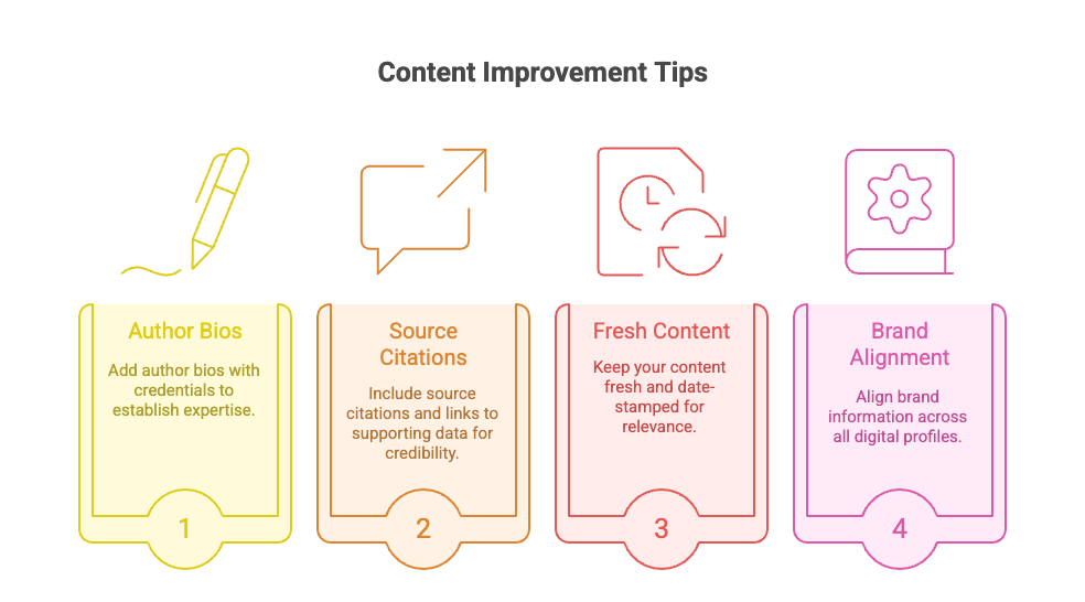 谷歌的AI模型在决定摘要内容时会考虑可信度。这意味着经验、专业知识、权威性和可信度(EEAT)仍然重要——但现在它必须是机器可验证的。